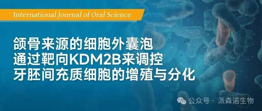 中文题目:颌骨来源的细胞外囊泡通过靶向KDM2B来调控牙胚间充质细胞的增殖与分化