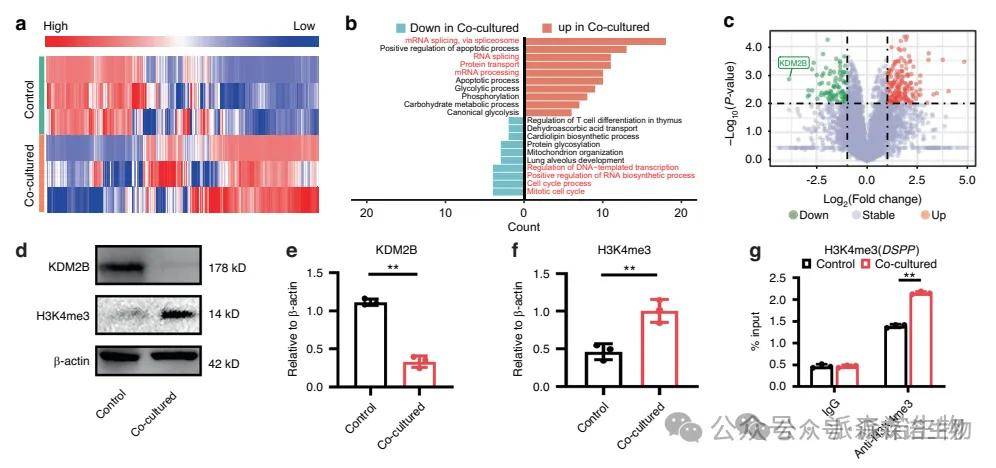 蛋白质组学结果显示,Mandible-EVs共培养显著上调分化相关蛋白、下调增殖相关蛋白。其中KDM2B(组蛋白去甲基化酶)的表达下调最为显著,提示其可能是Mandible-EVs调控牙齿发育的重要靶点。